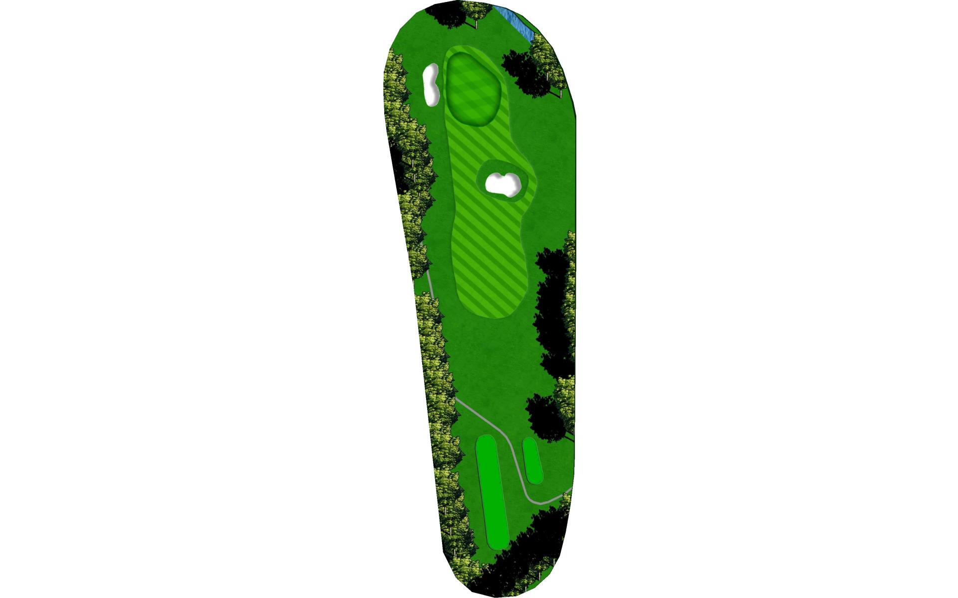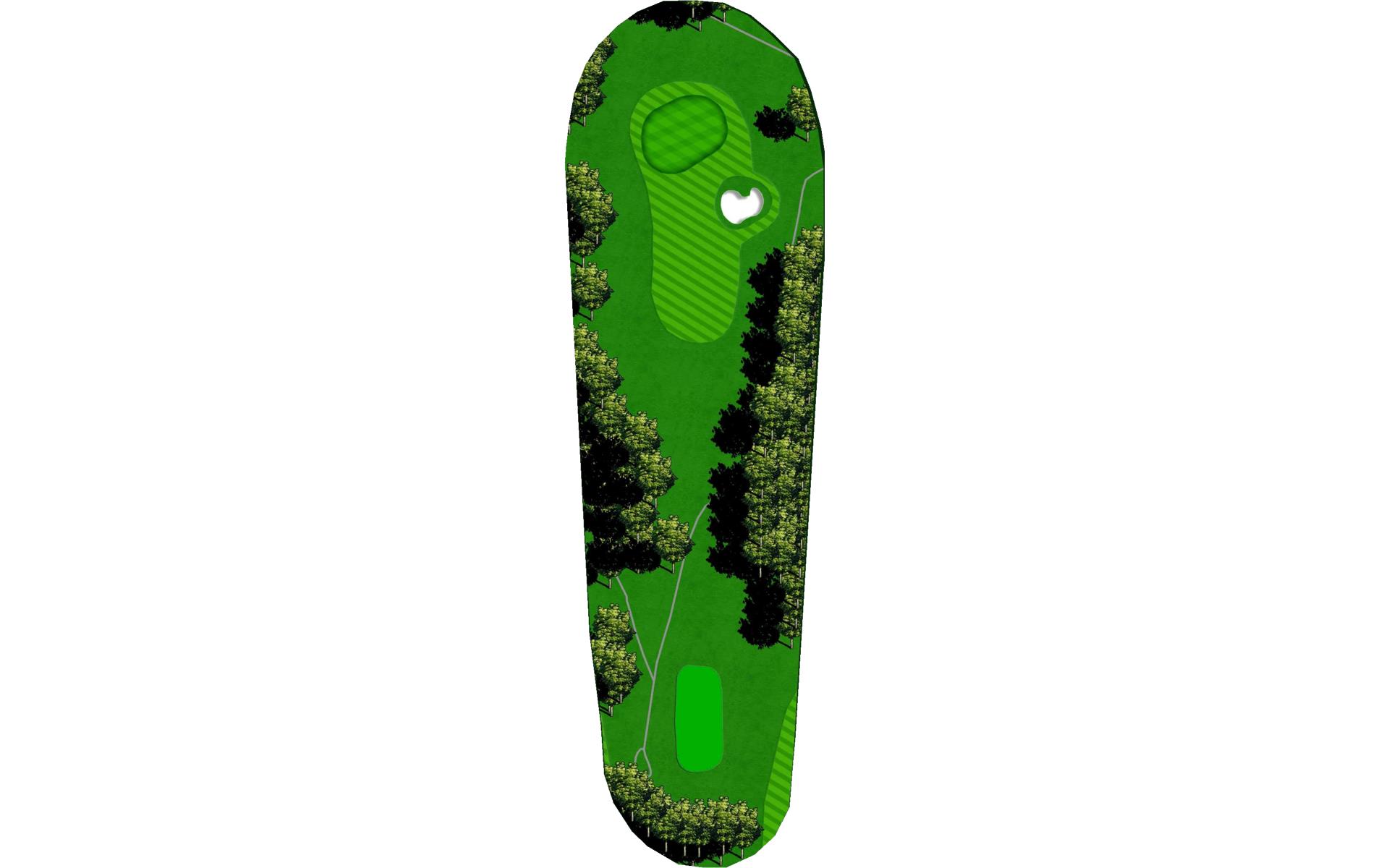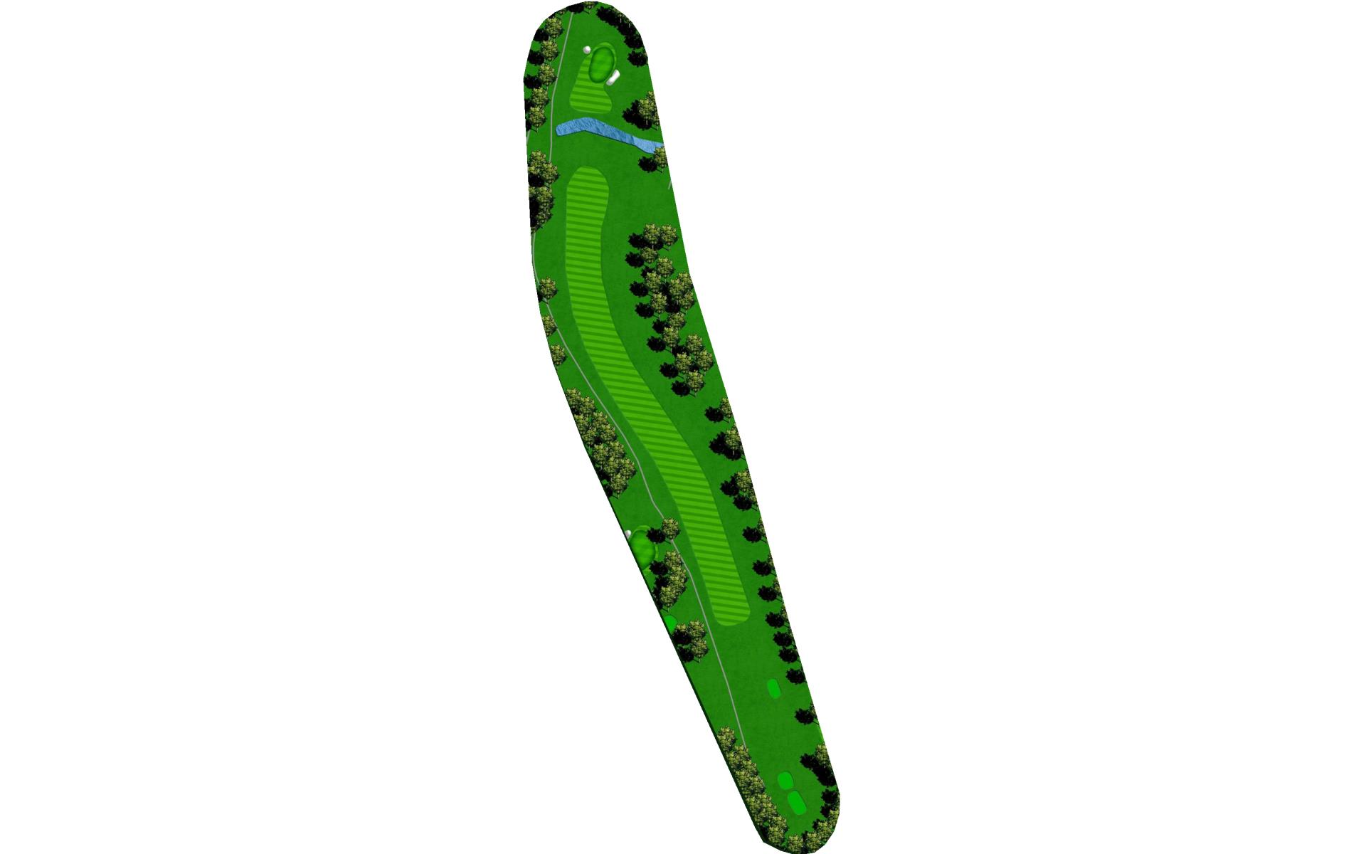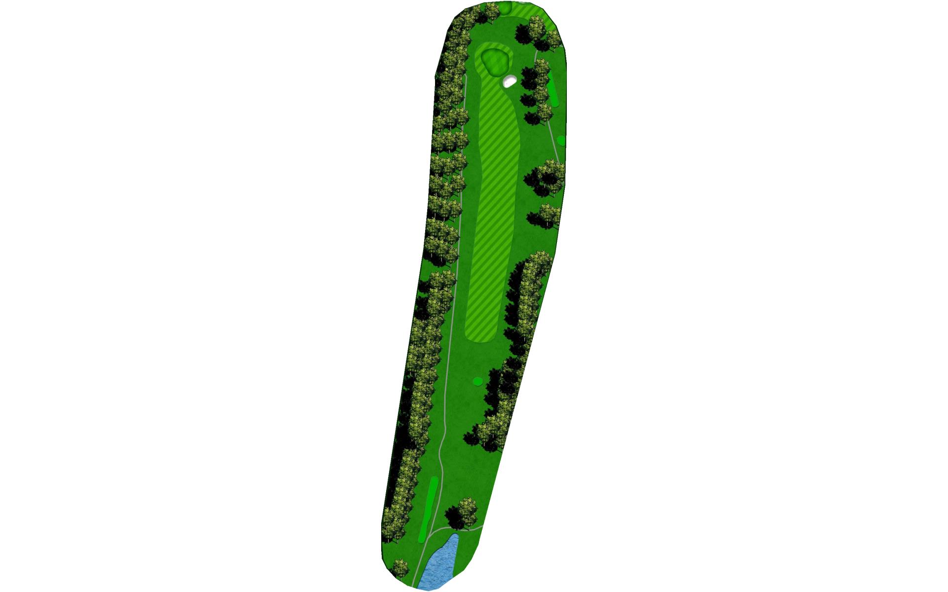 It's a big green, but protected by OB and water. Just aim at the middle of the green and two put for par and you will gain on the field.