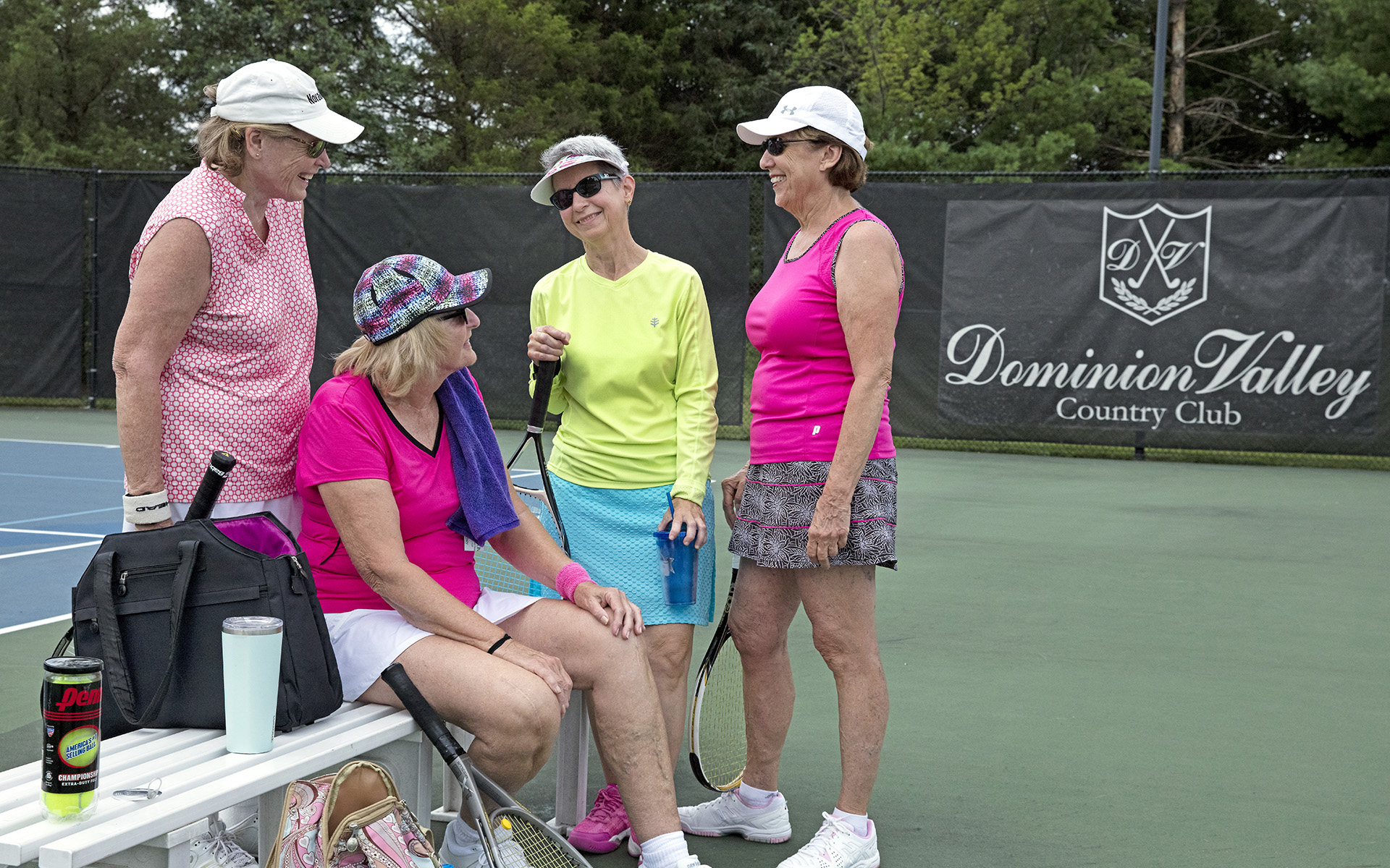 Four tennis courts lined for pickleball, an active tennis community, and individual and group lessons for players of all ages and skill levels.