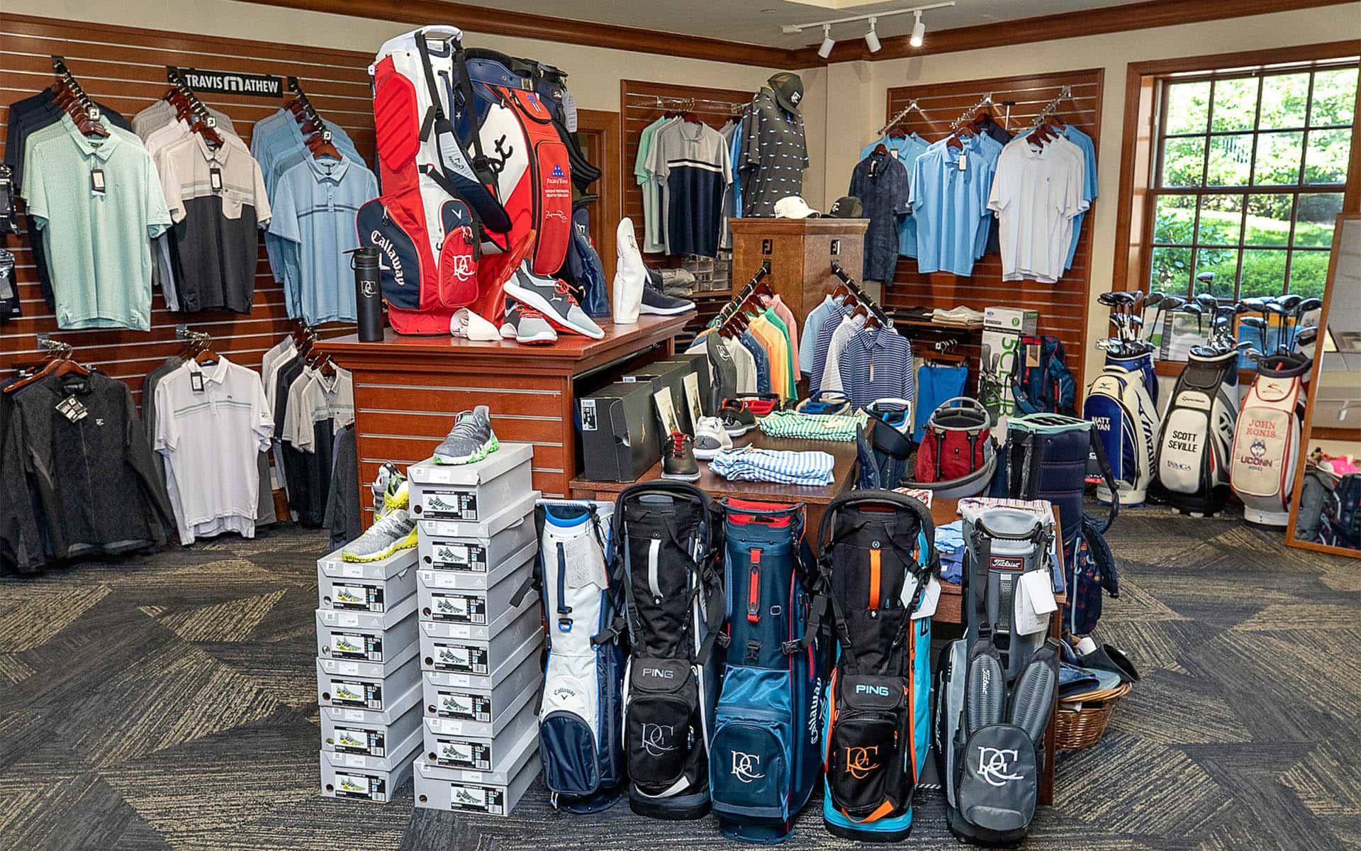 River Creek’s Golf Shop proudly offers a comprehensive range of premium golfing equipment and apparel. Discover top-tier clubs from renowned brands like Callaway, TaylorMade, Titleist, and Ping ensuring a perfect fit for every player's style. Step onto the course in style with attire from Peter Millar, Dunning, Johnnie O, FootJoy, Sun Mountain, Levelwear, Imperial, Nike, Jordan Brand, Adidas, G/Fore, and Ahead. At River Creek’s Golf Shop, we're committed to providing you with the finest in both performance and style.