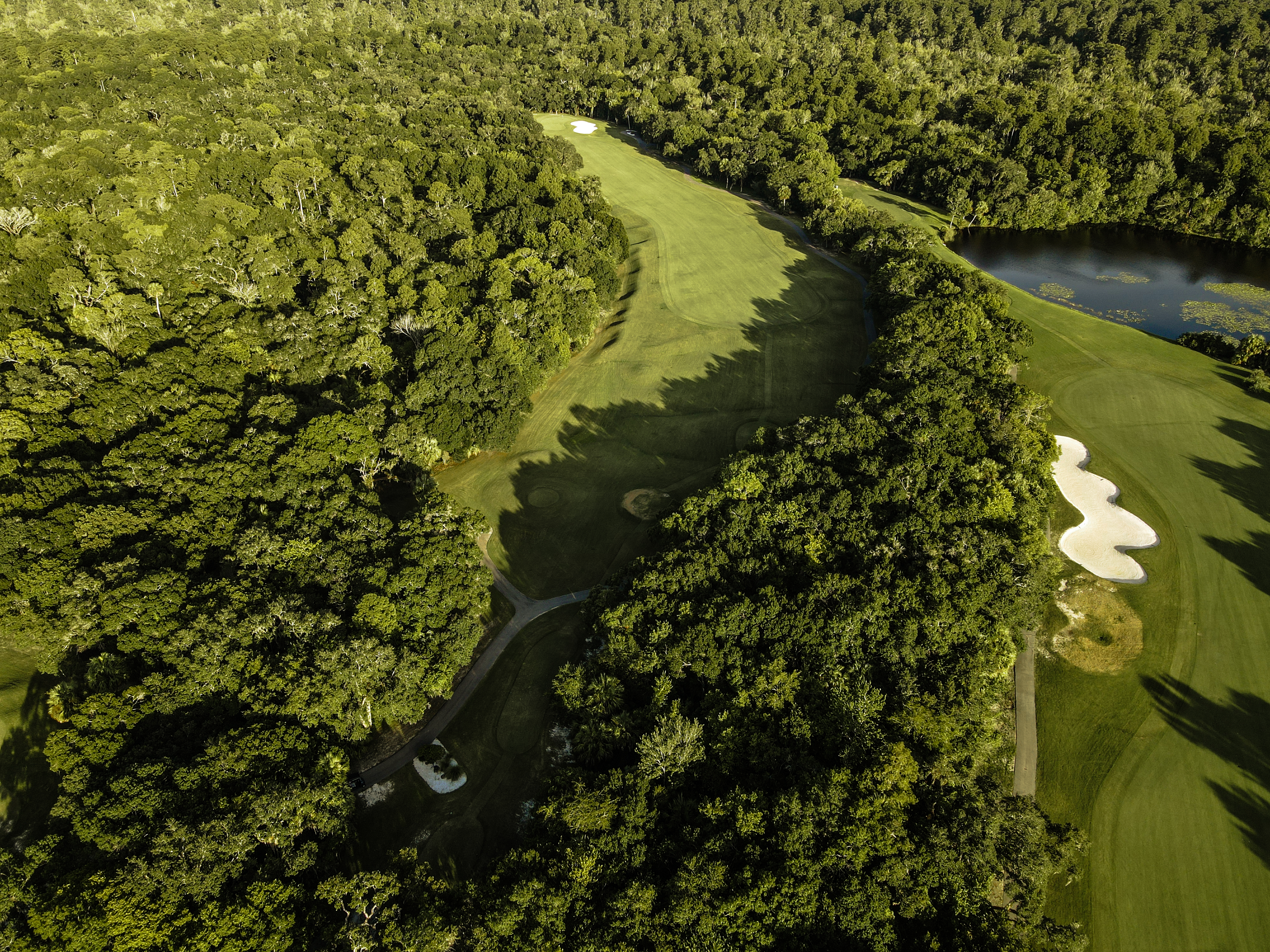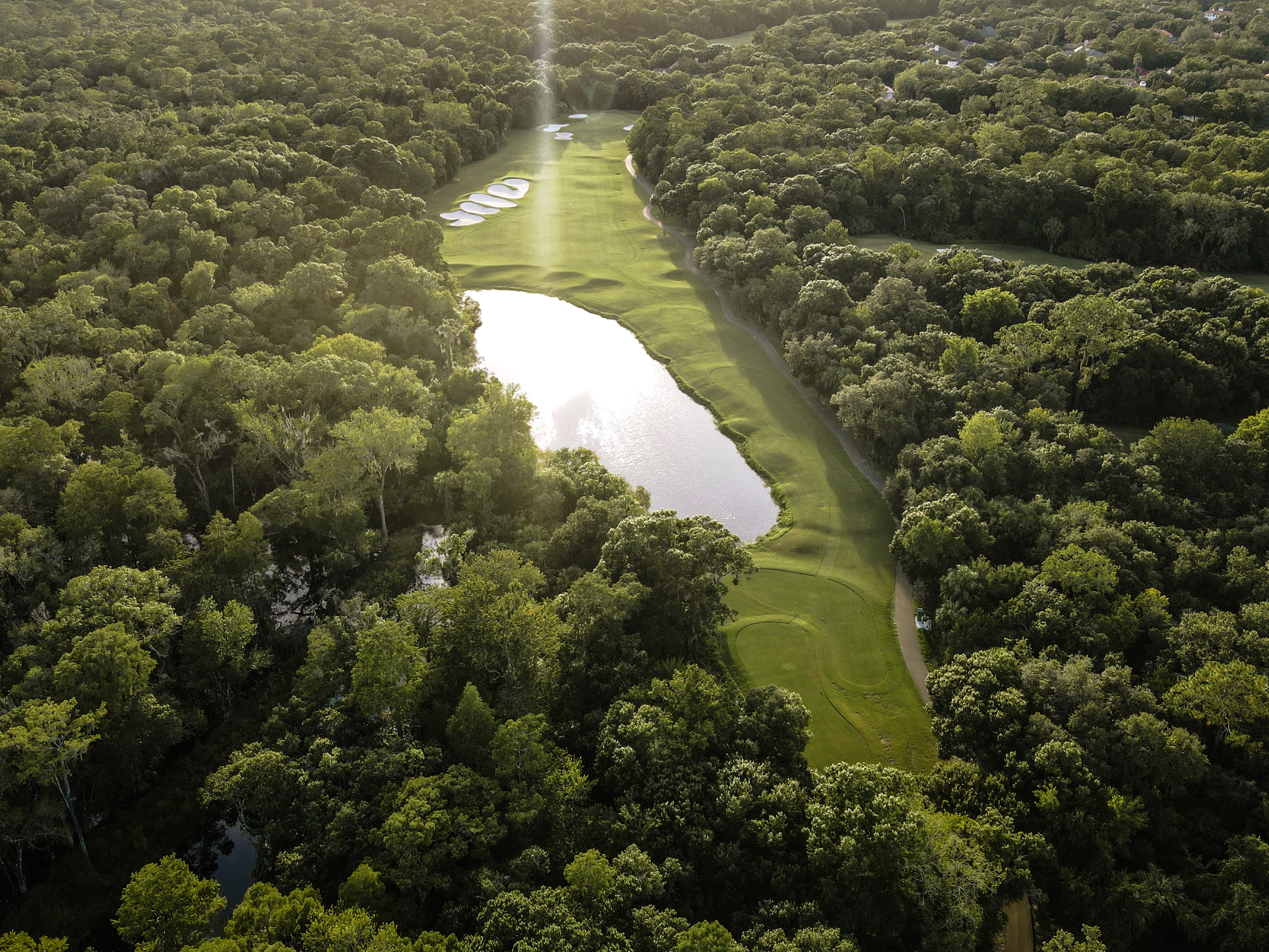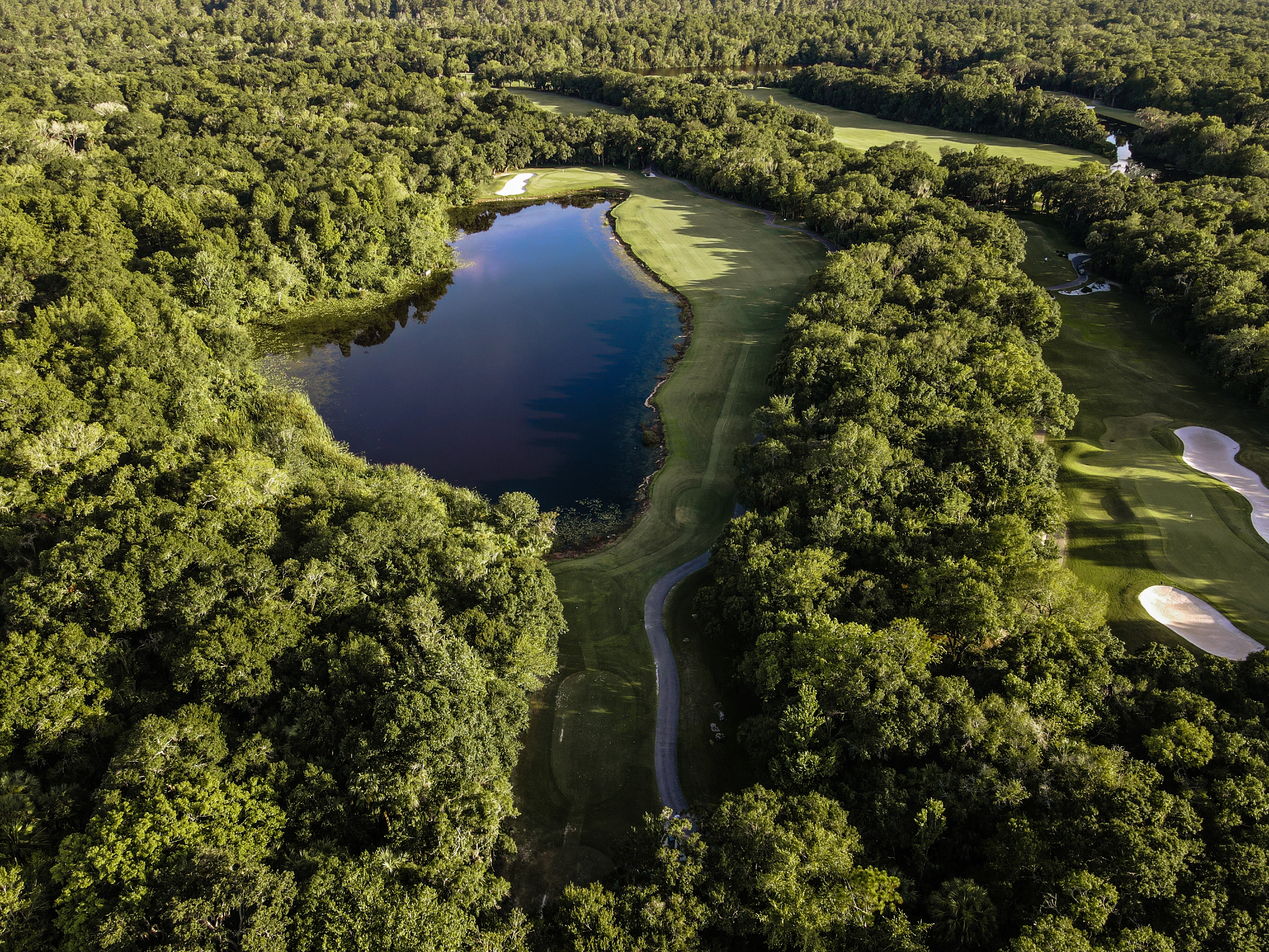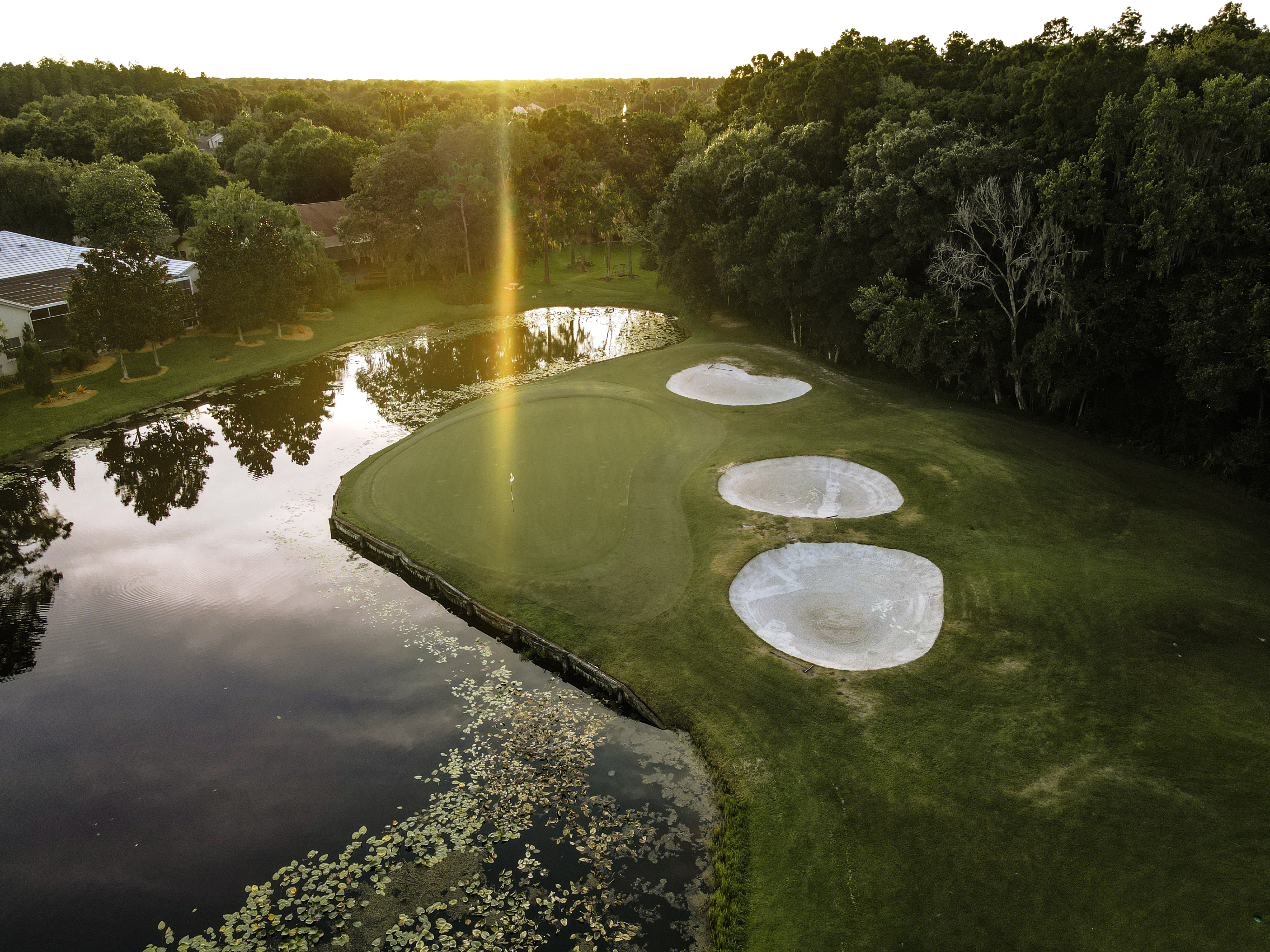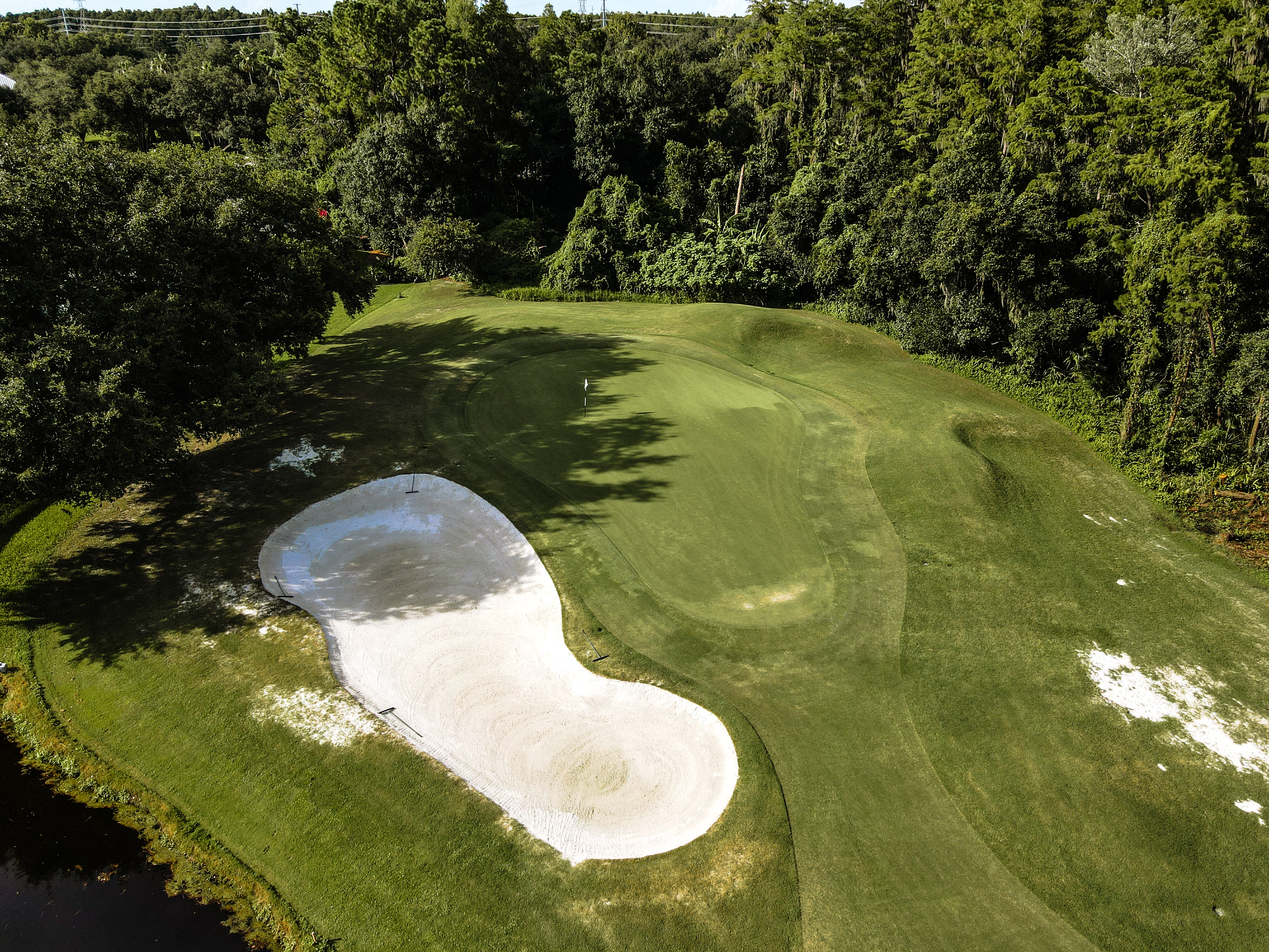 | The prettiest par 3 on the course has a rather large green which is located just over a lake and protected by bunkers short right and left. Best bet here no matter the hole location is to do your best to find the middle of the green, which will offer an easy putt to any hole location. |
