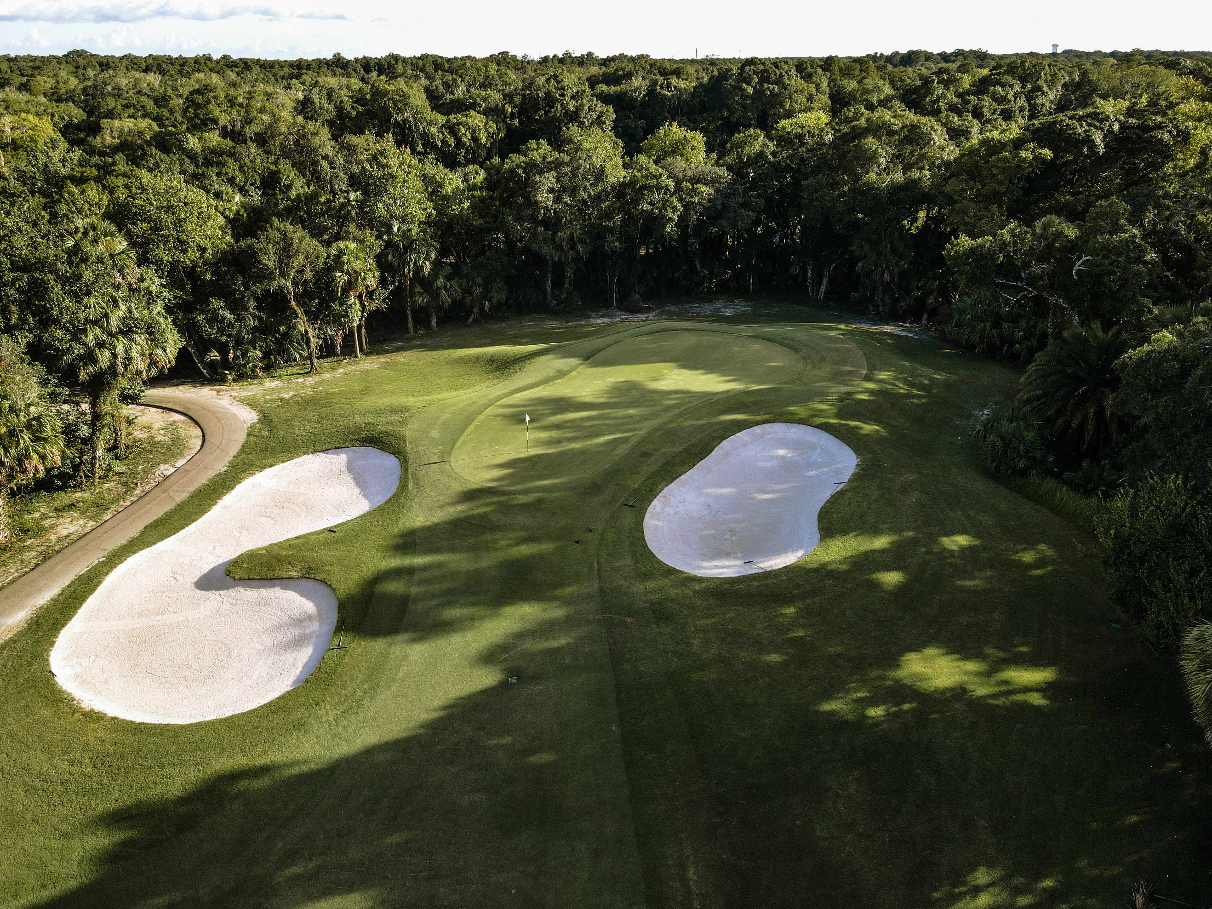 | Our easiest par 3 by far, the two-tiered green is narrow in the front but quite wide in the middle and back. |