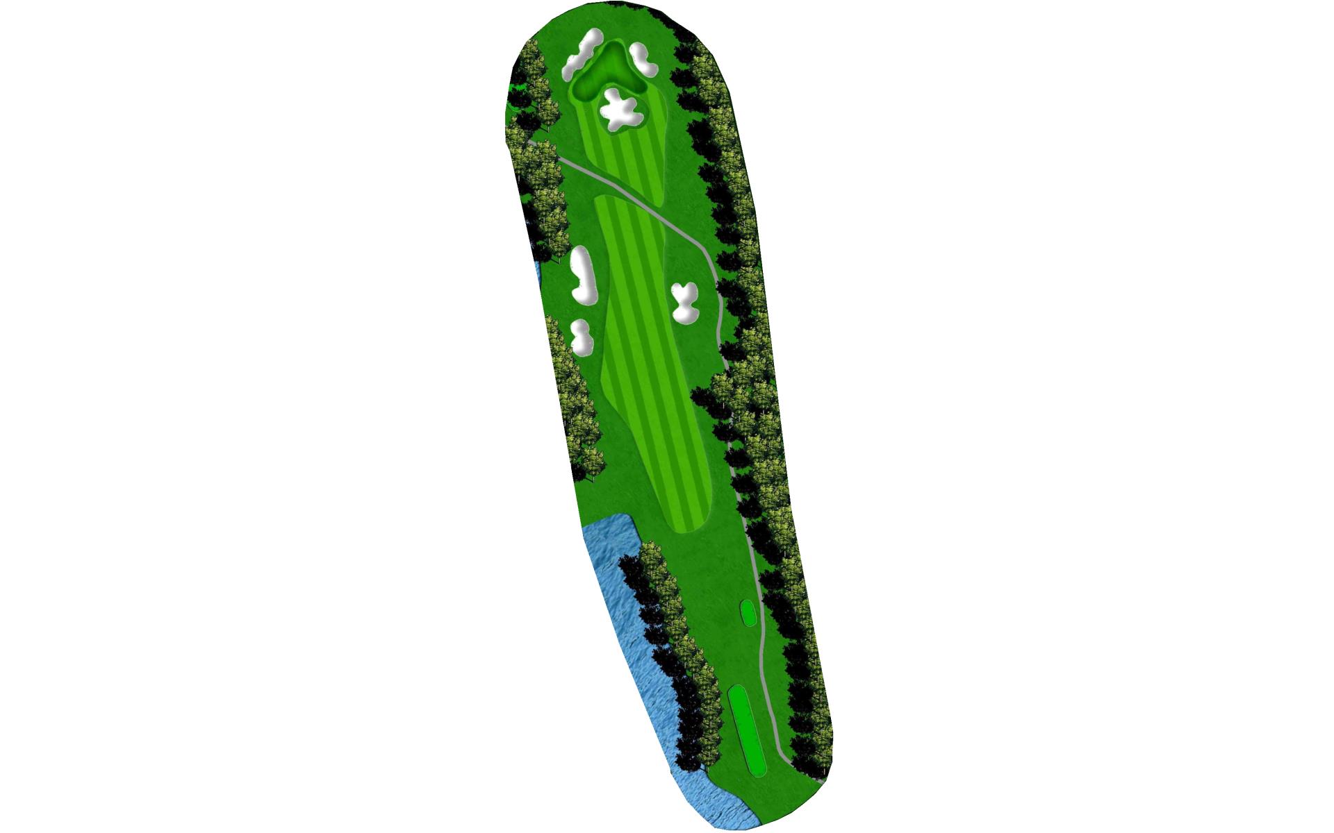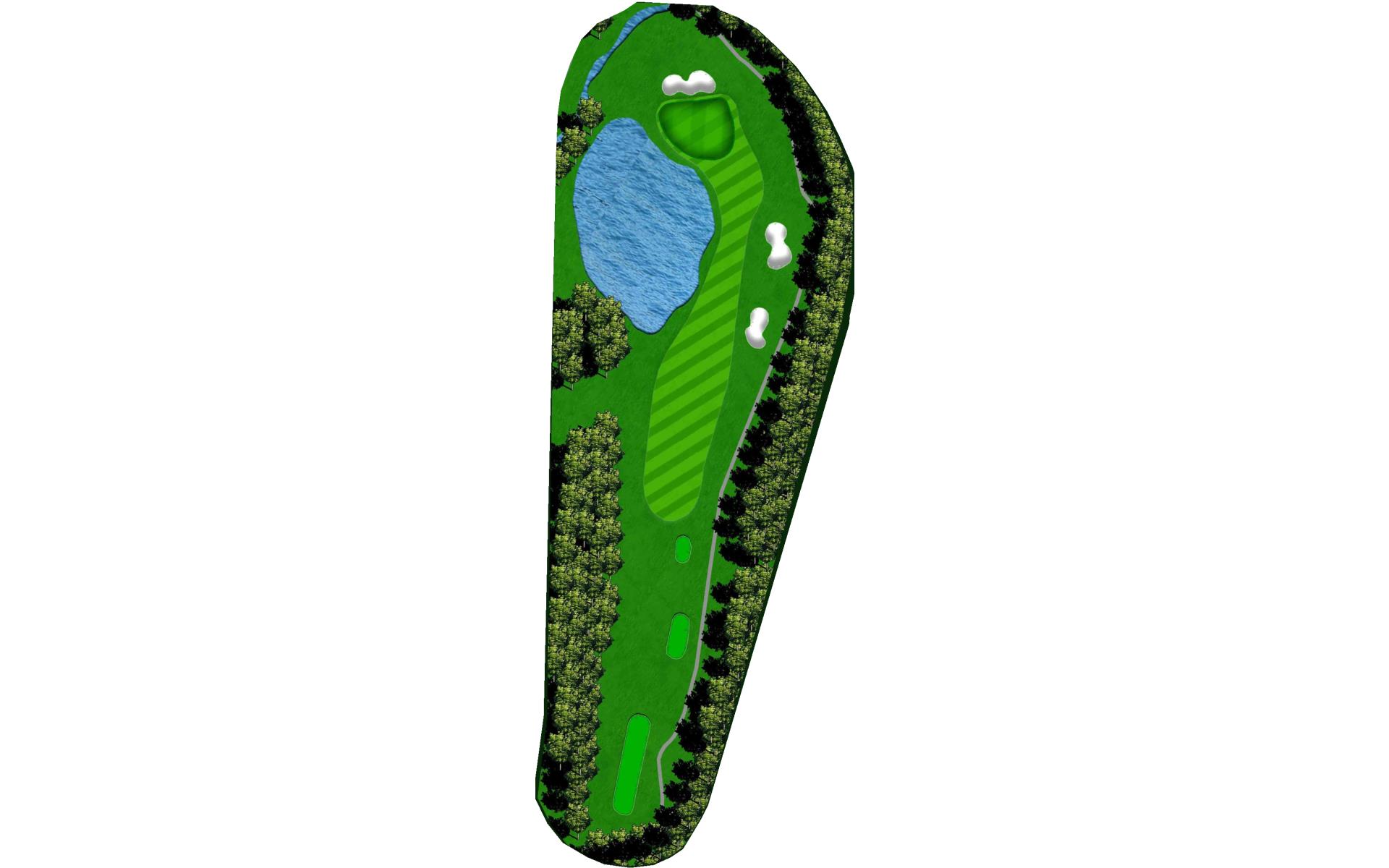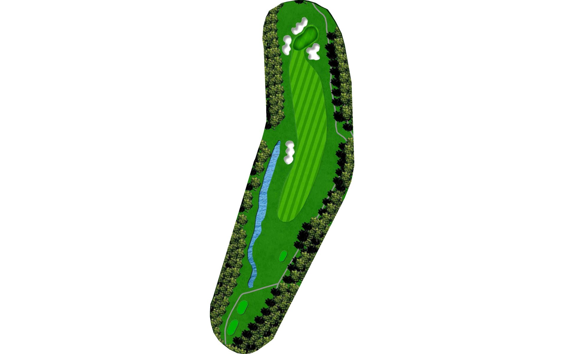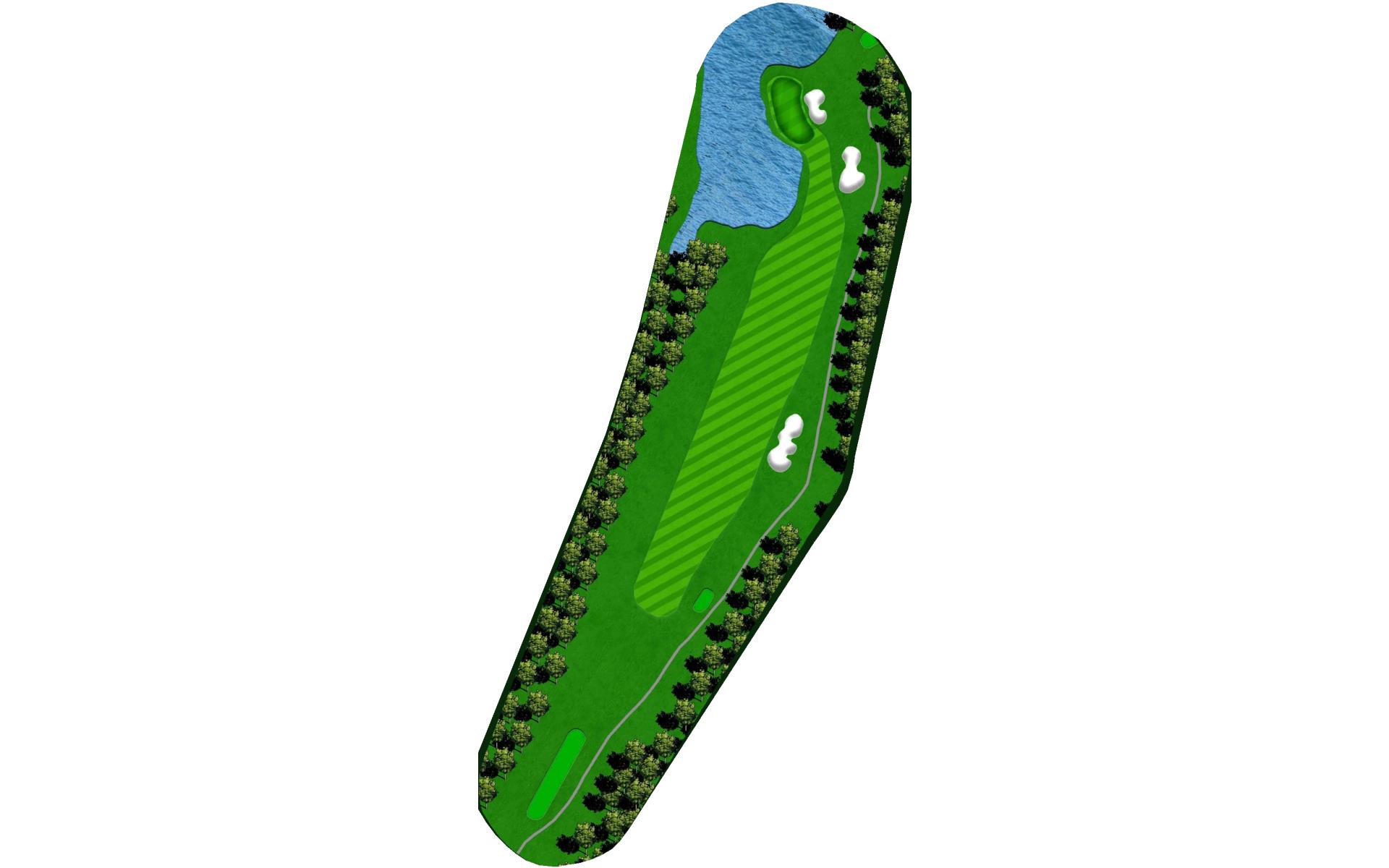 For this short par 4 with a green that’s guarded by water, don’t hit it long off the tee or you will be in the water.
