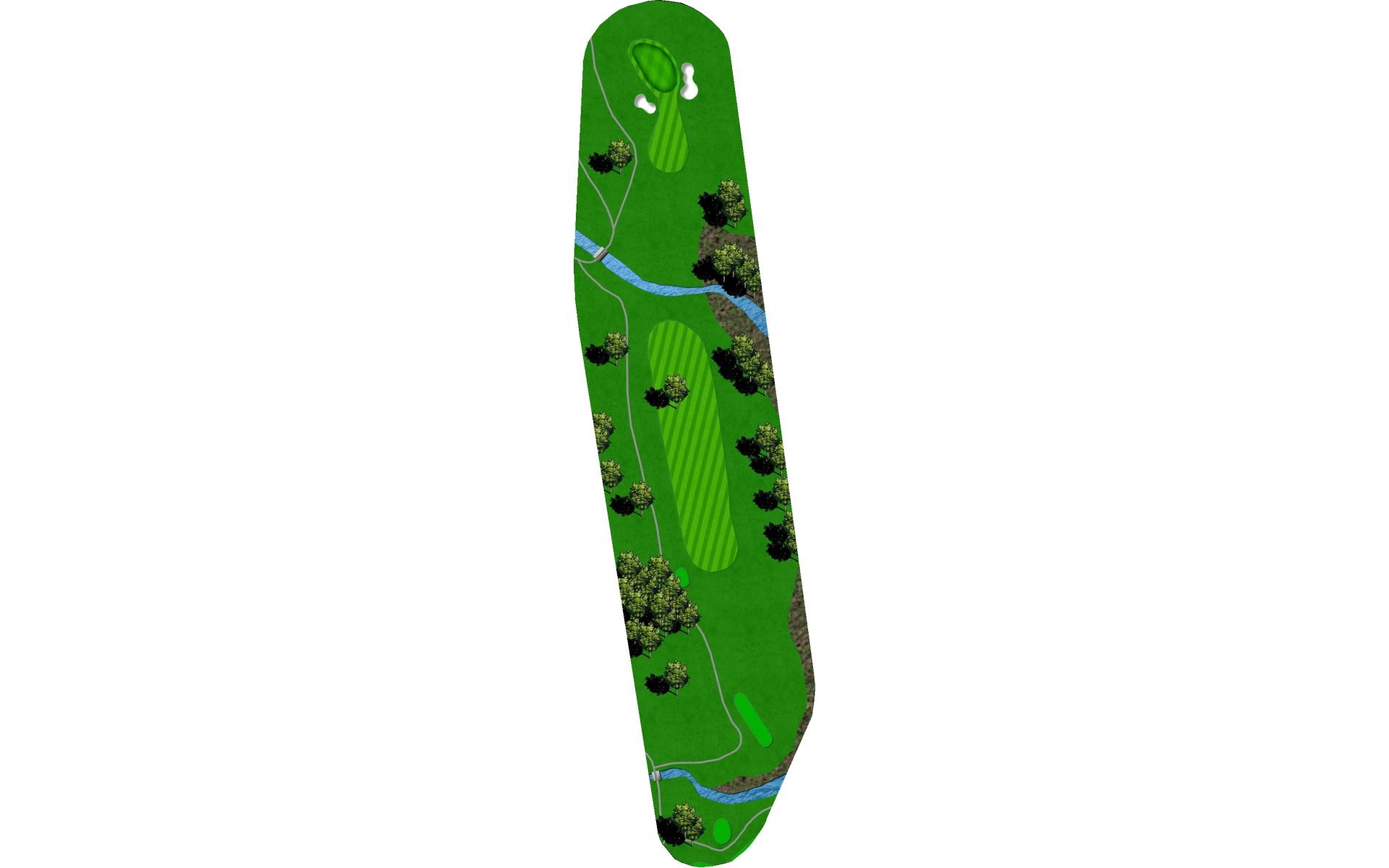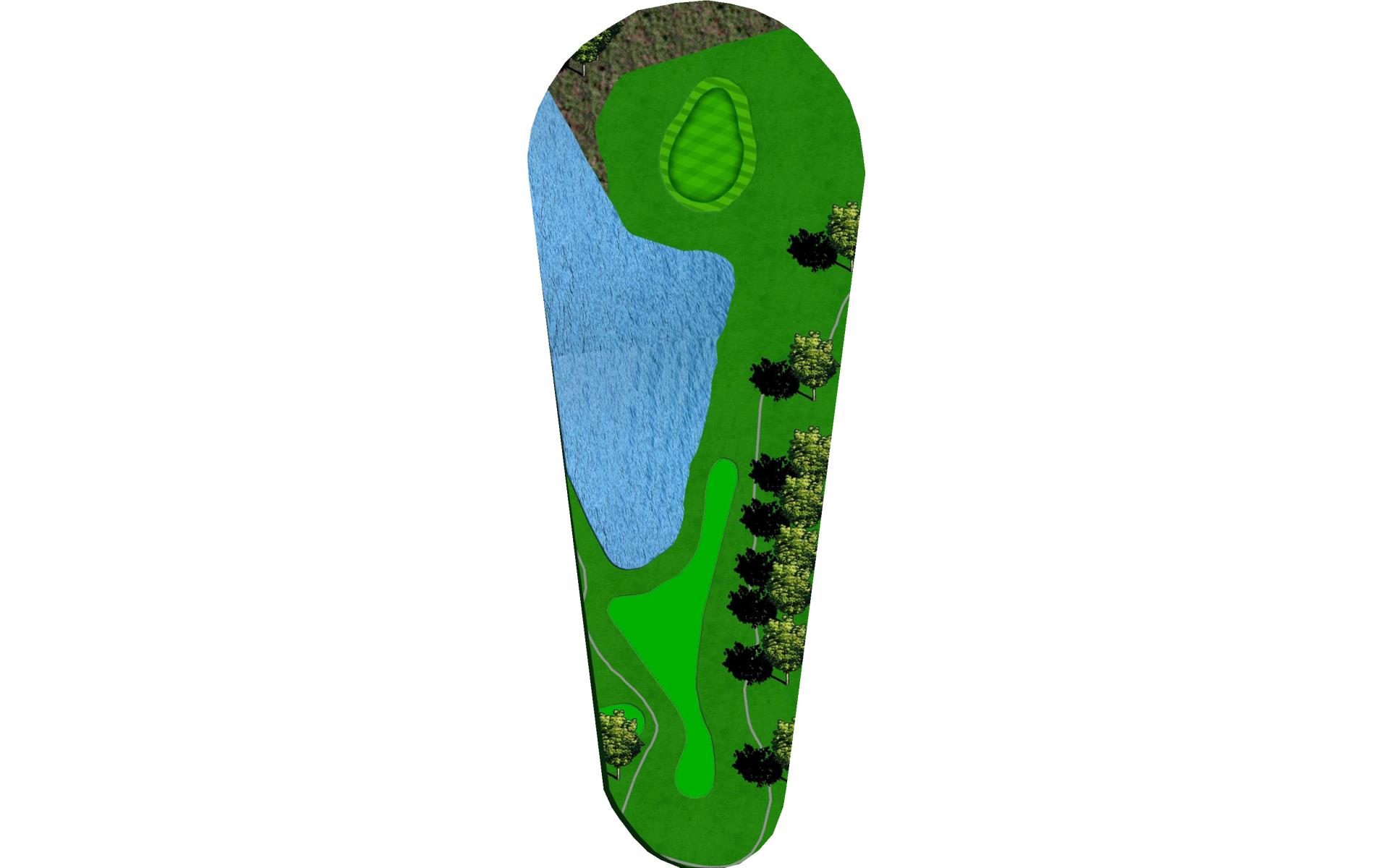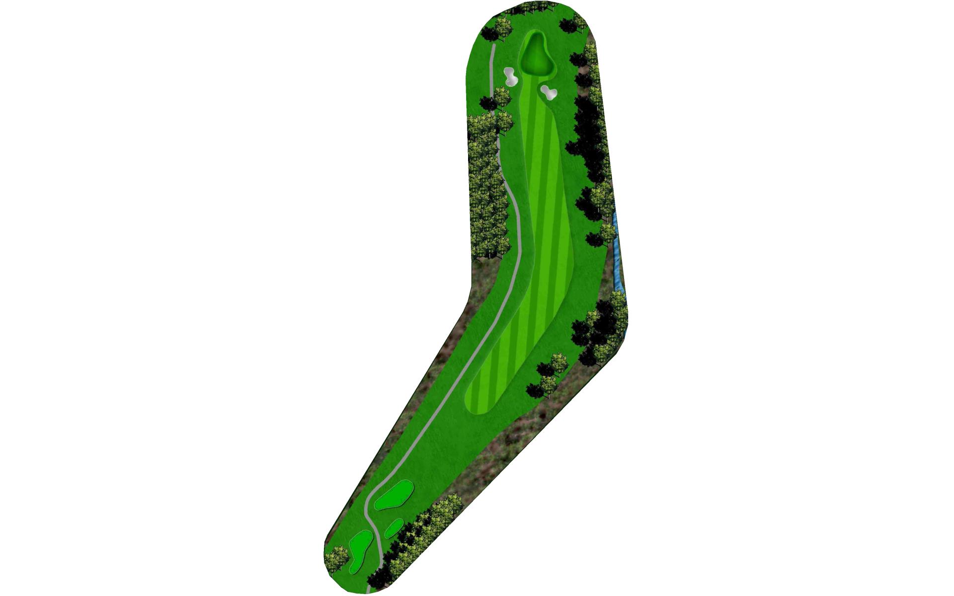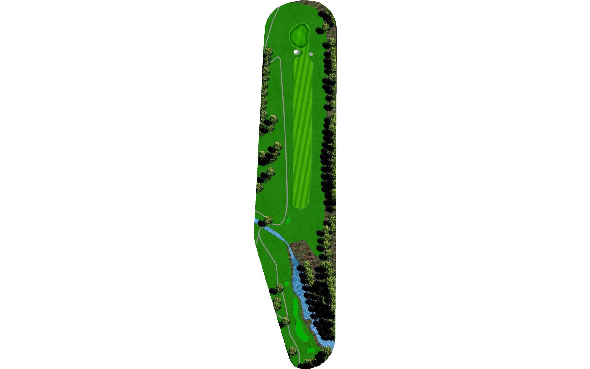 Tee shot placement is more important than length. Avoid the pond on the left and the creek on the right. The goal is to use a short iron into this green.