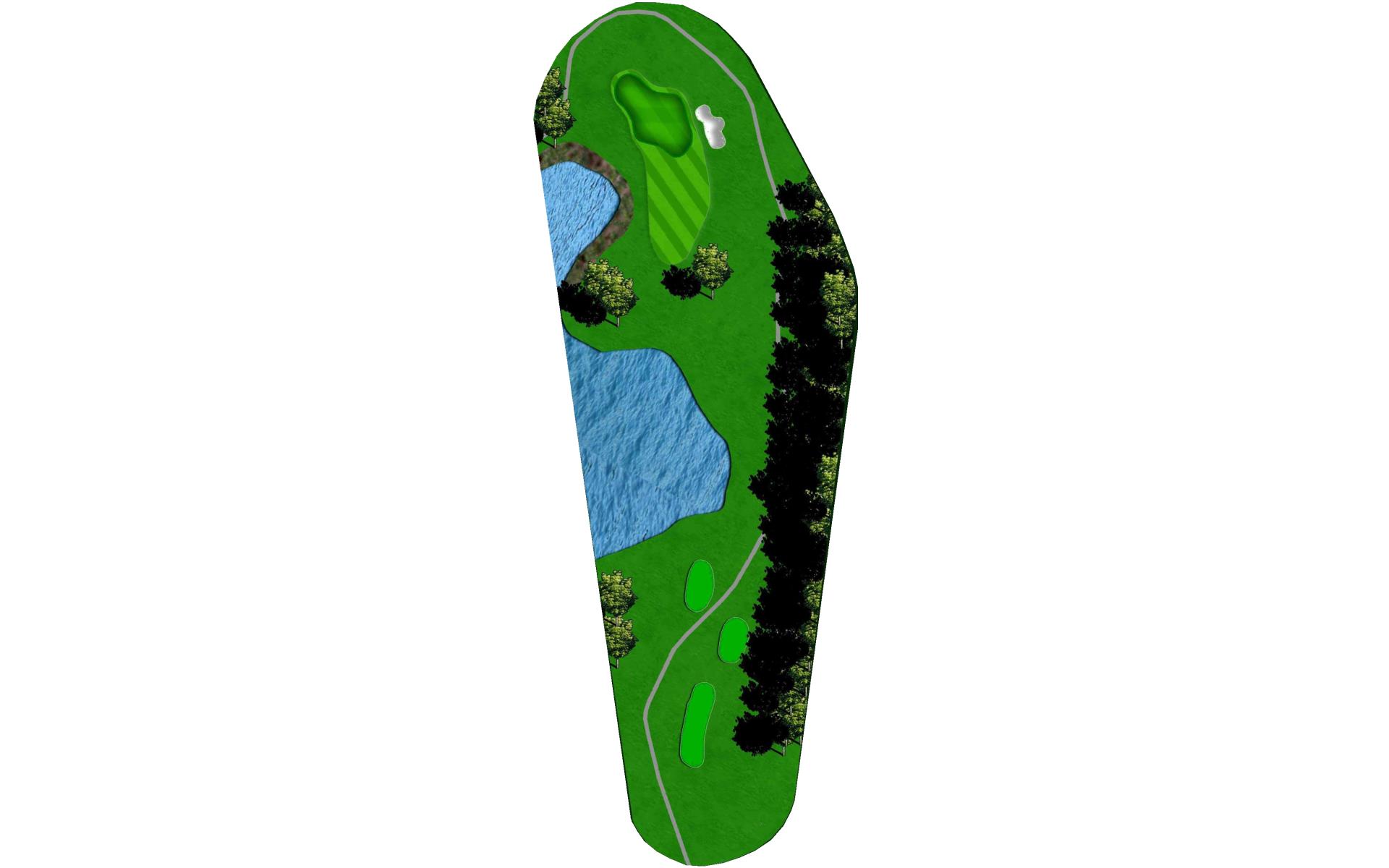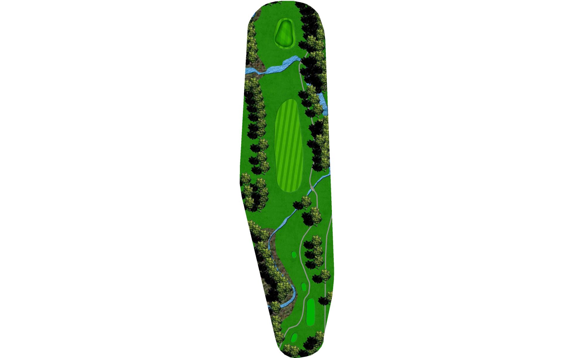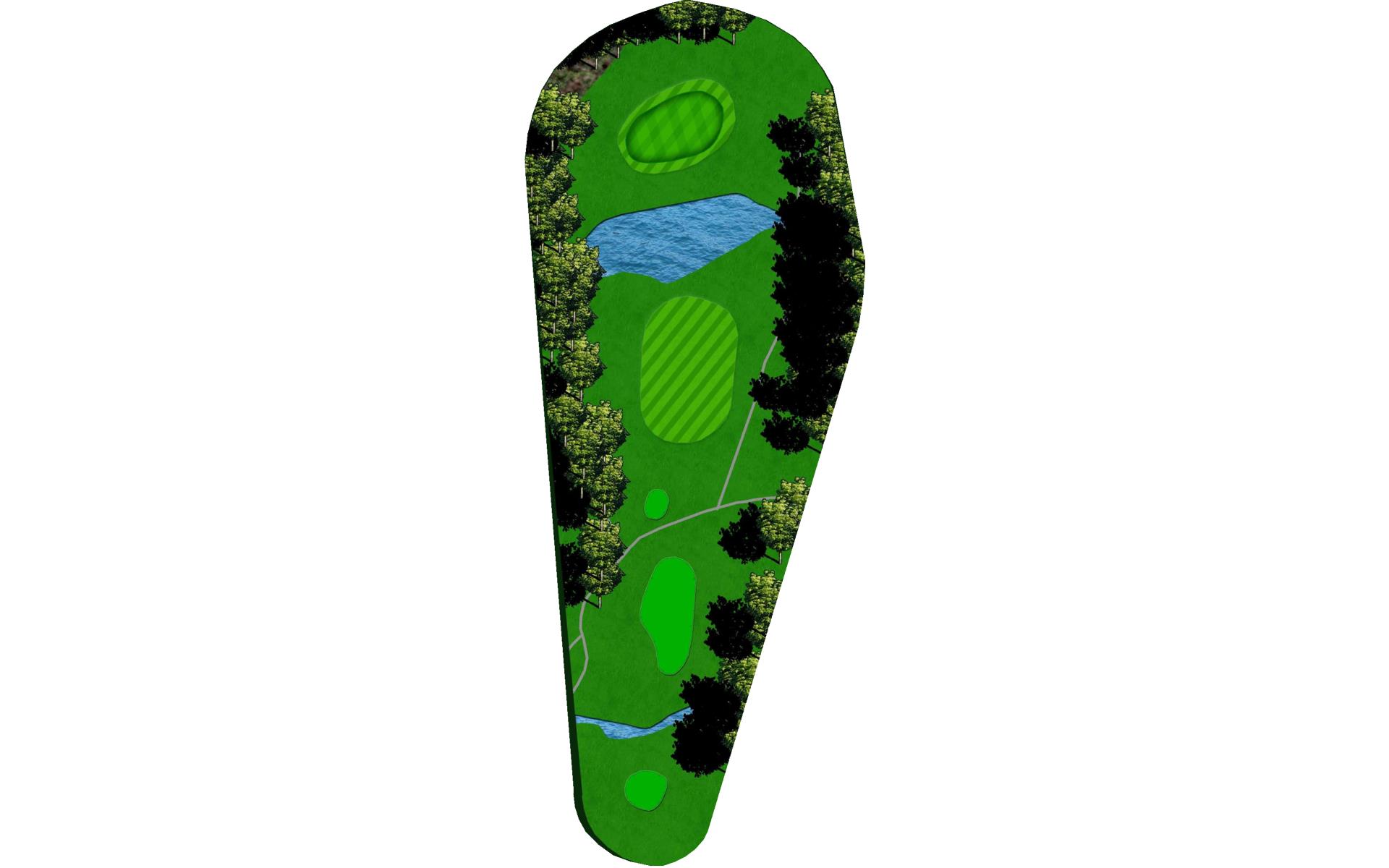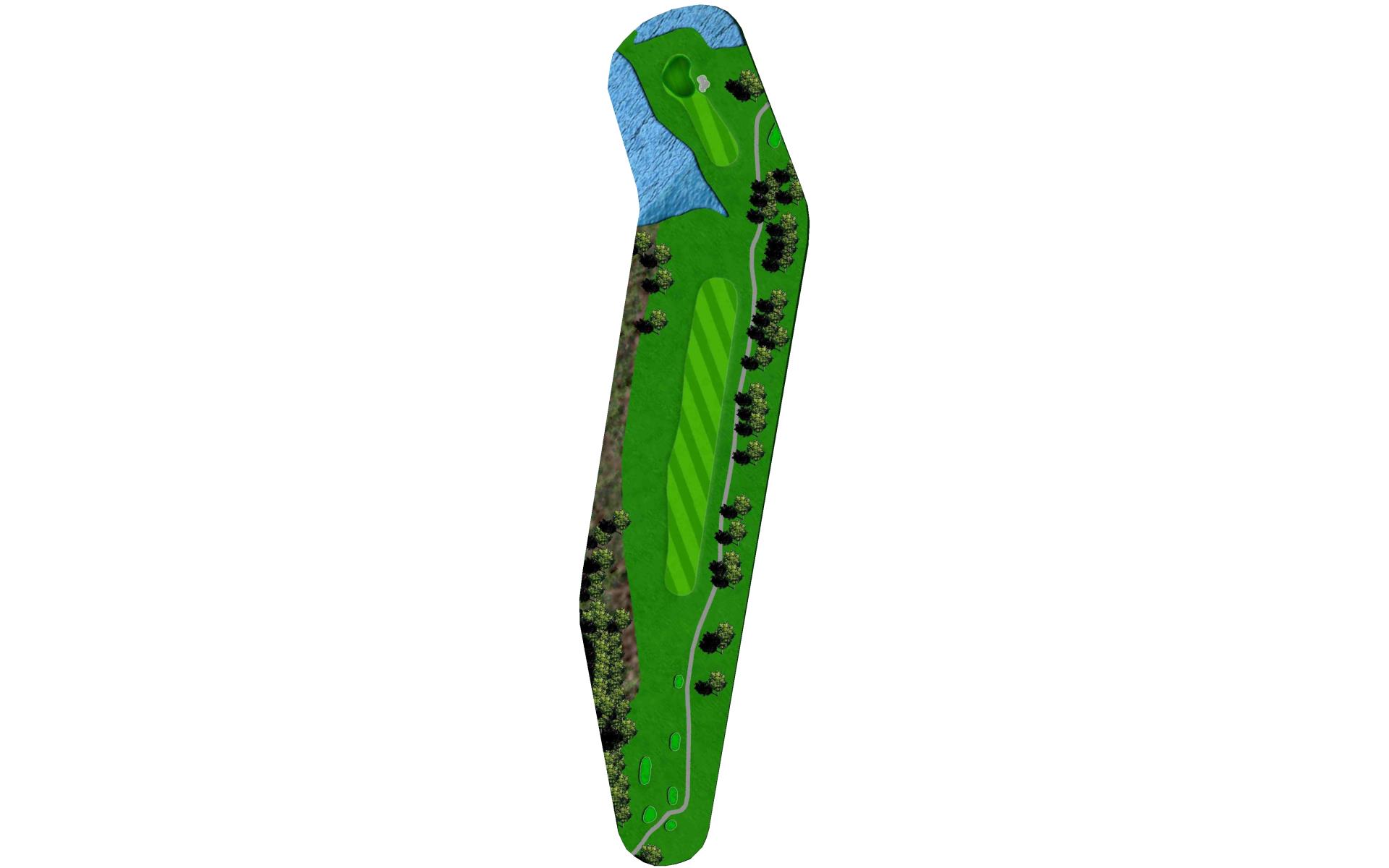 Tee shot placement is more important than length. Avoid the pond on the left and the creek on the right. The goal is to use a short iron into this green.