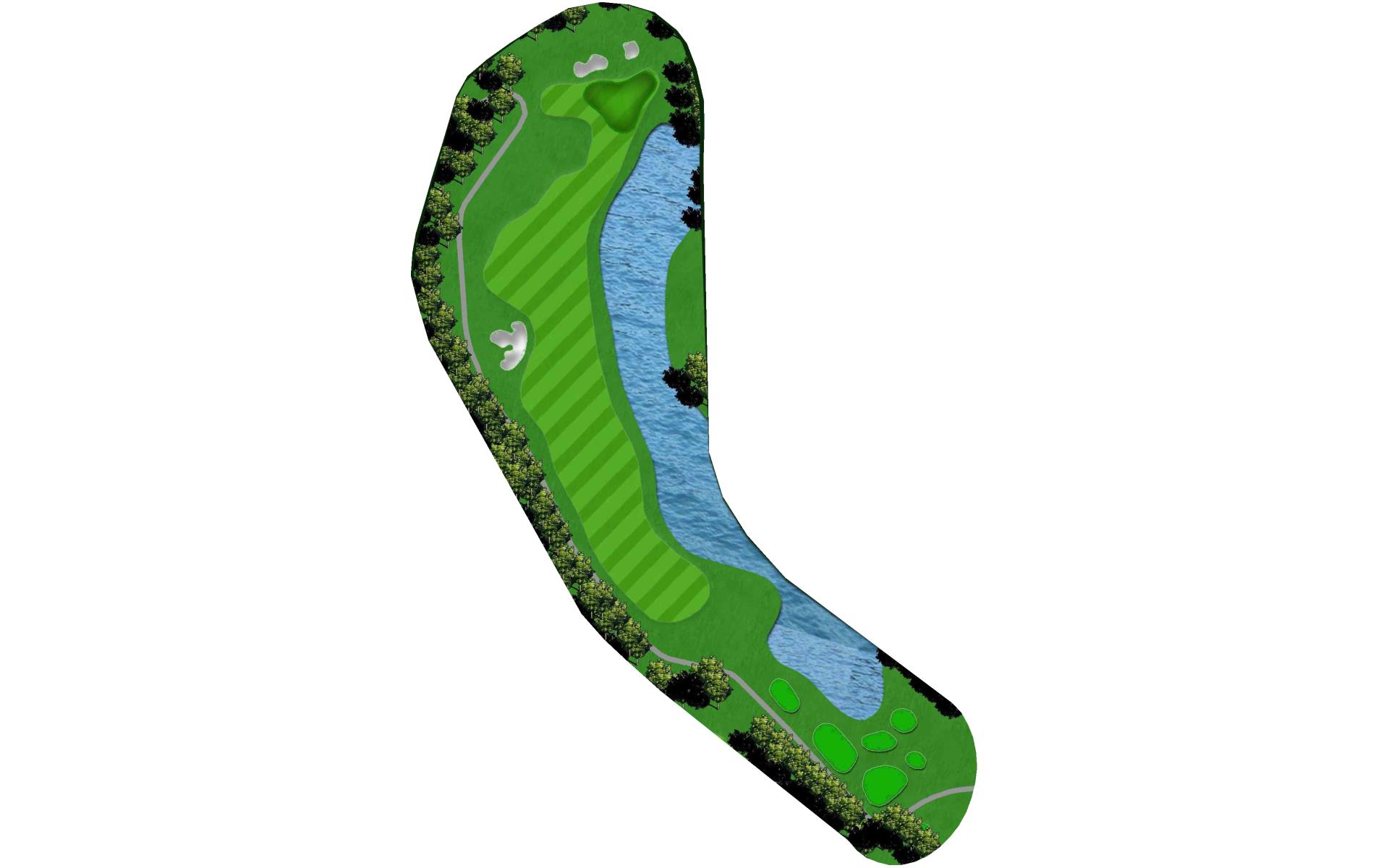 Hitting a good drive on this hole is more important than a long drive. Avoid the bunkers and water down the right hand side of this hole. Aim left center of the fairway, avoid the trouble on the right hand side of this hole and you set yourself up for a good chance at par.